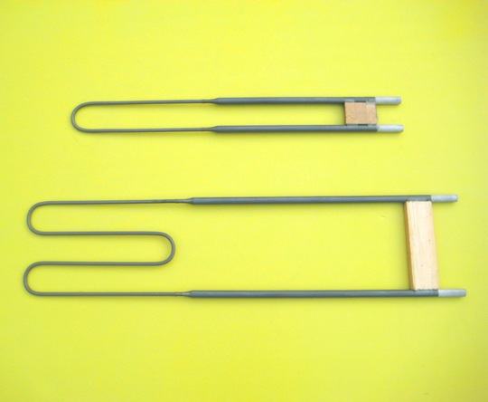 四柄W型發(fā)熱元件適合爐膛高度較矮的電爐,四柄元件較雙柄元件更具有經(jīng)濟(jì)效益,因?yàn)榉质颐繂挝婚L(zhǎng)度所需的元件較少,而引致熱力流失的冷端部位也較少,大大提高了熱效率。